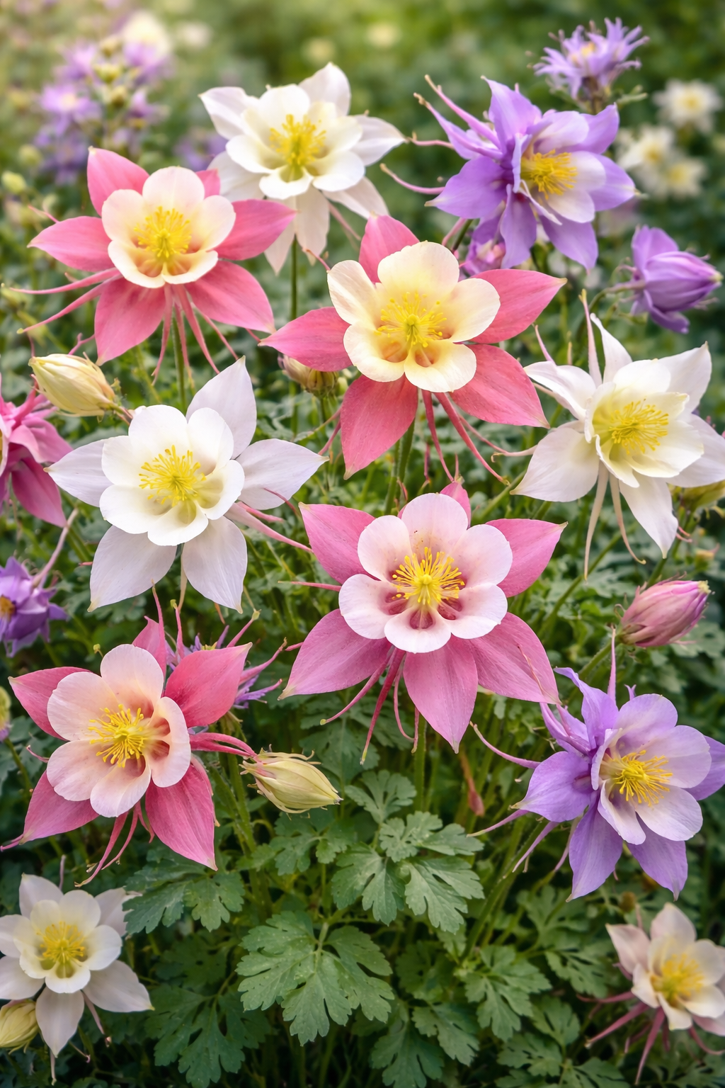 Akeleje "Merry" er en smuk og romantisk sommerblanding med elegante blomster i fine nuancer af rosa, gul, hvid og lilla. De karakteristiske blomster med lange sporer svæver let over det grønne løv og tilfører haven et lev og naturligt udtryk. Akeleje er en flerårig plante, som er særdeles velegnet til blomsterbede, naturhaver og som kantplante. Den er er også populær hos bier og andre bestøver og passer perfekt ind i vild og levende haver.