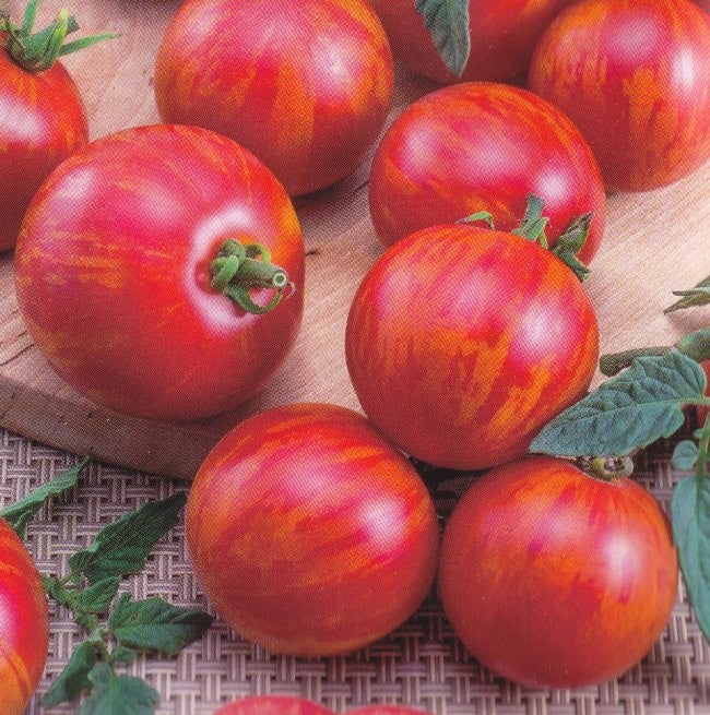 Denne sort udvikler velsmagende røde cherrytomater, der er smukt dekoreret med gyldne striber. Frugterne vejer omkring 40 gram. Der er omkring 20-25 frugter på en klase.