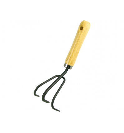 Fin, lille og lækker håndkultivator med træskaft. God solid kvalitet. Vinklen på jernet er tilpasset, så den ergonomisk passer godt til havearbejdet, hvor man ofte står foroverbøjet og kultiverer i bedet og rundet om planterne.