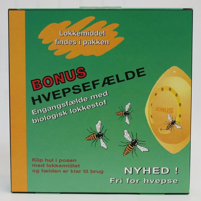 Denne biologiske hvepsefælde lokker hvepse og fluer væk fra mad og drikkelse i haver og på terrasser. Indeholder ikke gift. Lokkestoffet er udtrukket fra naturlige fødekilder med et meget kraftigt fødebaseret lokkemiddel.