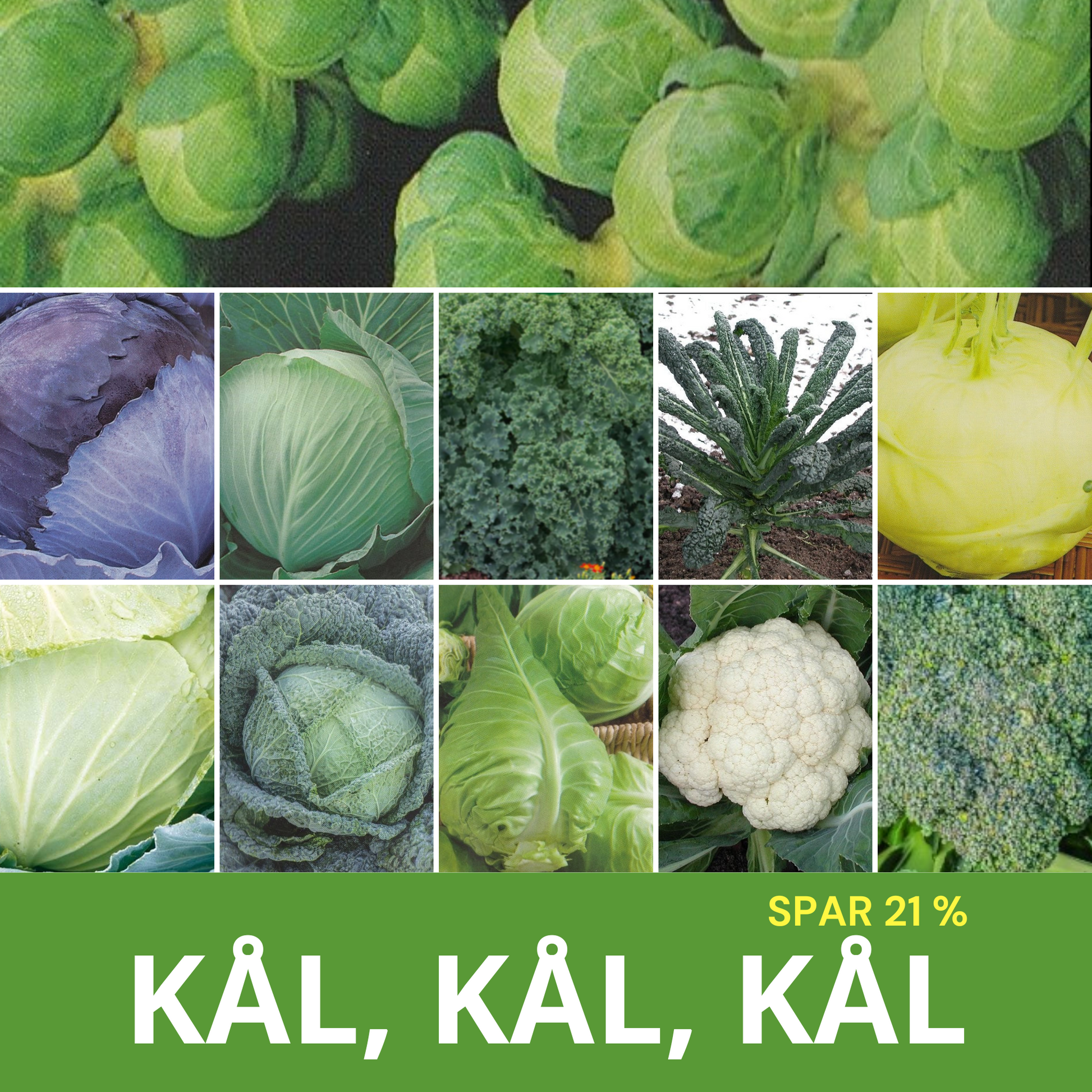 Denne frøpakke er sammensat til kålelskeren, der gerne vil have lidt af det hele i køkkenhaven, Pakken indeholder 11 frøposer med forskellige kålfrø som hvidkål, spidskål, grønkål og rosenkål og er sammensat, så der både er kål, der kan høstes og bruges løbende og kål som kan gemmes og/eller konserveres.