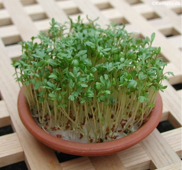 En velkendt vitaminrig krydderurt, der kan dyrkes i små skåle på fugtigt vat. Karsen er klar til brug ca. 1-2 uger efter såning.