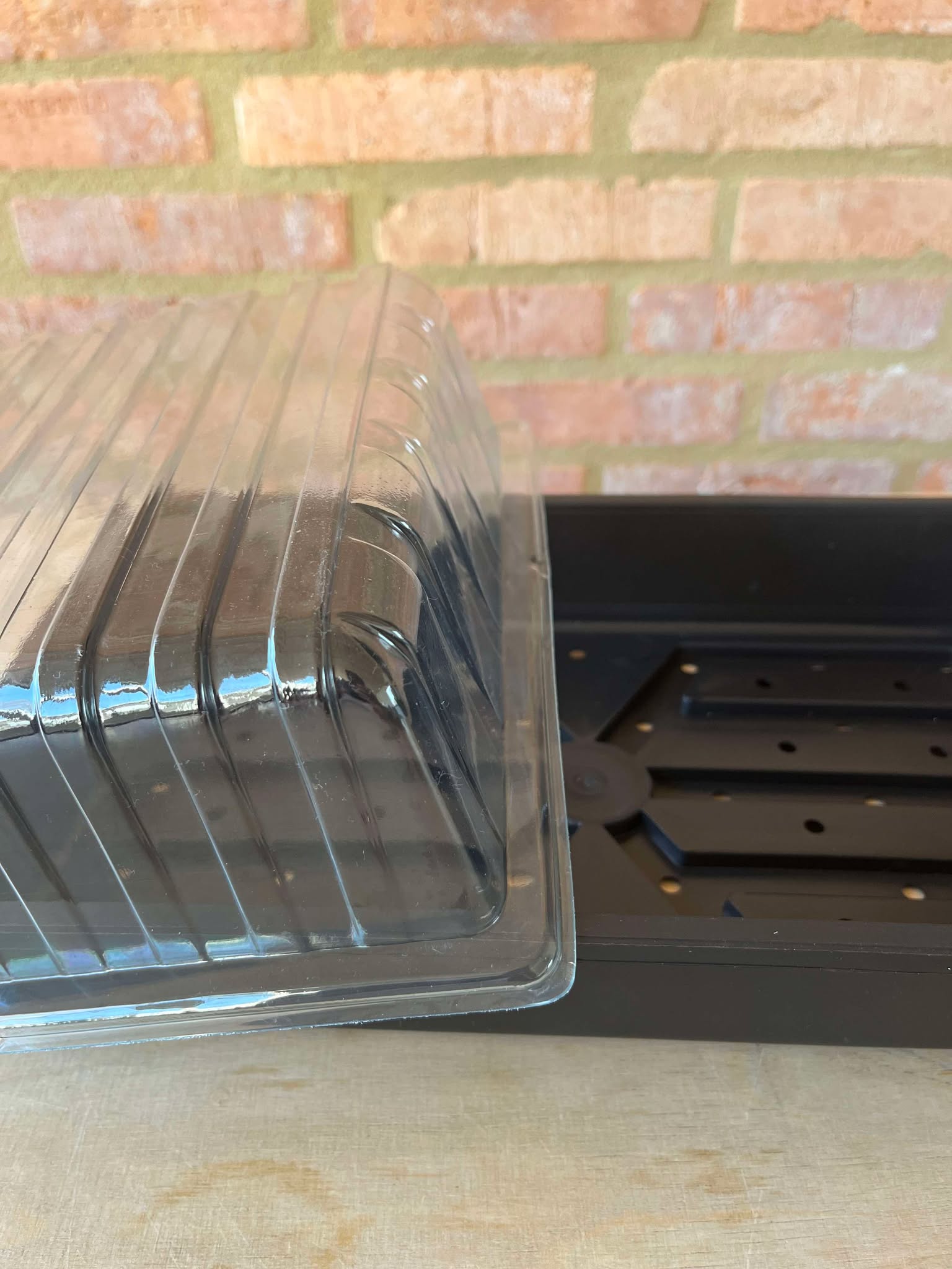 Minidrivhus i kraftig plast og i en god størrelse, der kan rumme en del frø eller små potter. Drivhuset har drænhuller i bunden, der er med til at sikre, at der ikke overvandes. Må der ikke være huller i bunden finder du et minidrivhus uden drænhuller her