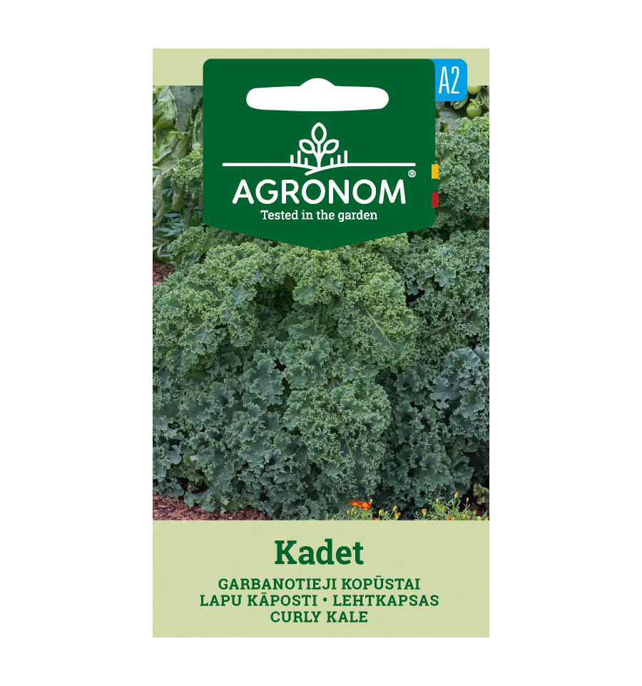 Frø af grønkåls-srten 'Kadet' der er en meget taknemmelig sort, der er let at dyrke. Bladene kan spises rå, blancherede, kogte eller blendede. Planterne tåler let frost.