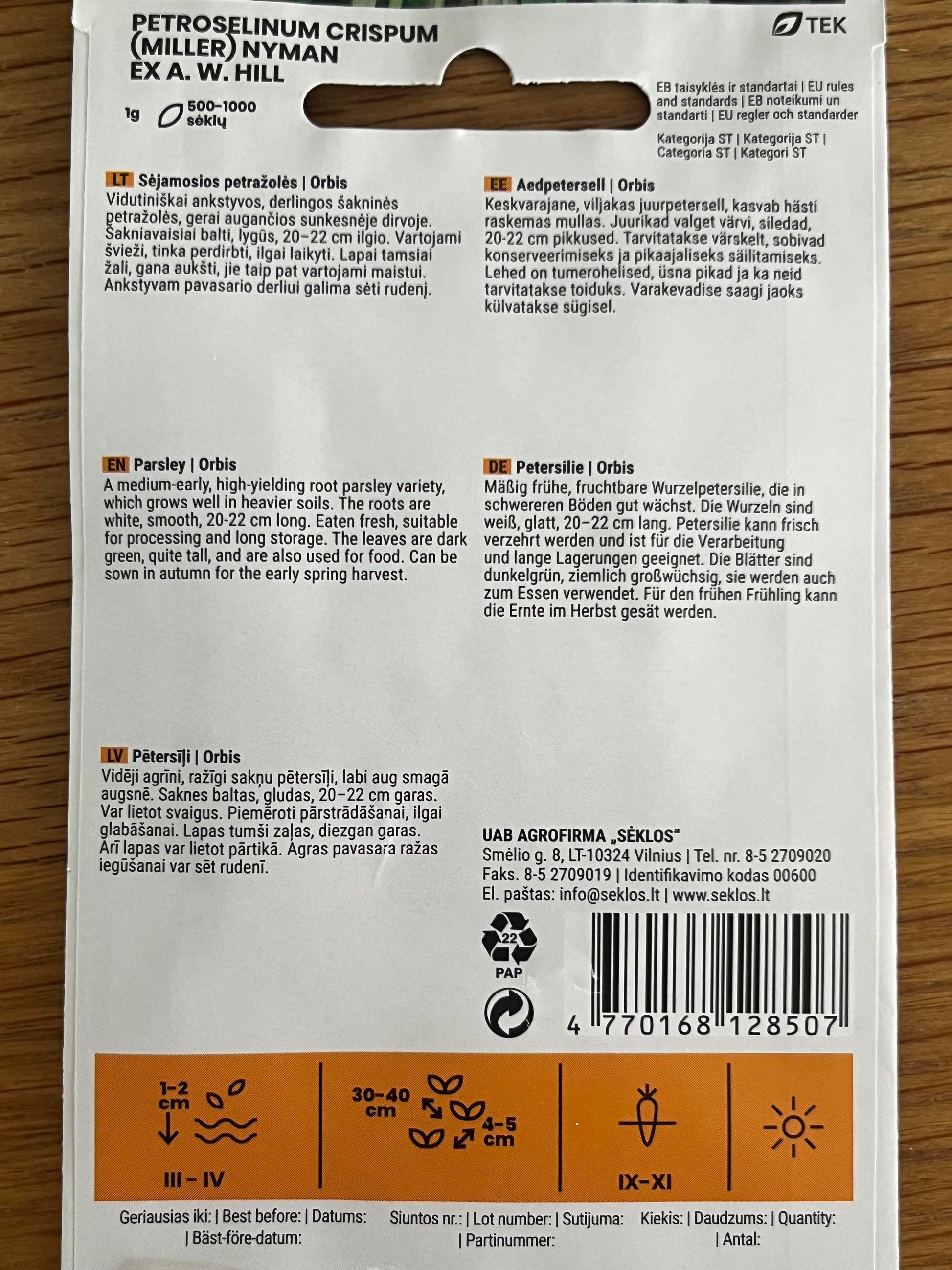 'Orbis' er perfekt for haveentusiaster, der ønsker en alsidig og nem persillerod at dyrke, både til kulinarisk brug og langtidsopbevaring."