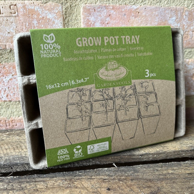 3x12 = 36 stk. nedbrydelige vækstpotter, der kan plantes direkte ud i jorden sammen med frøplanten.