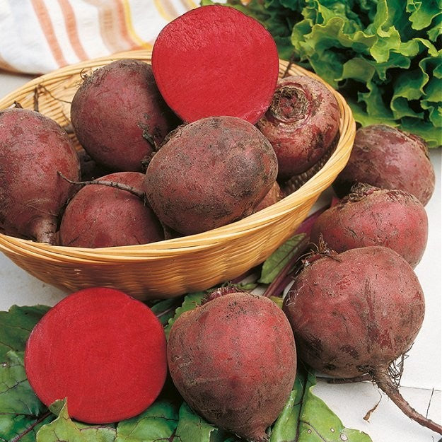 Økologisk rødbede. En god sort, der udvikler runde, mørkerøde rødder.