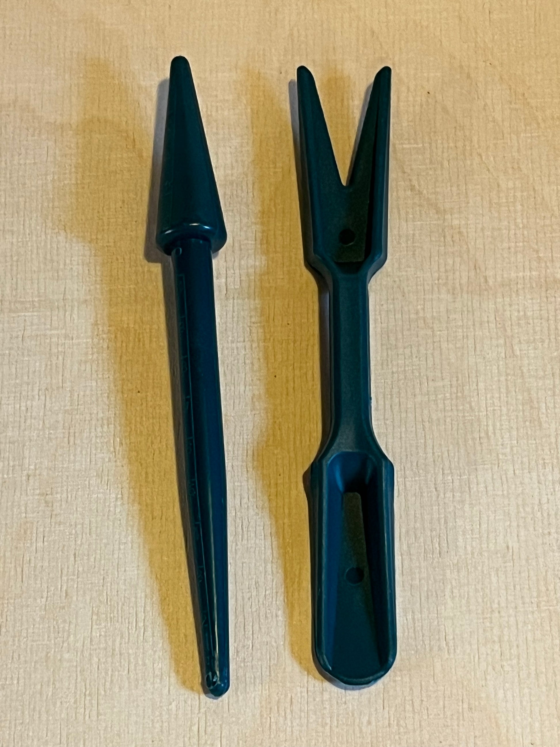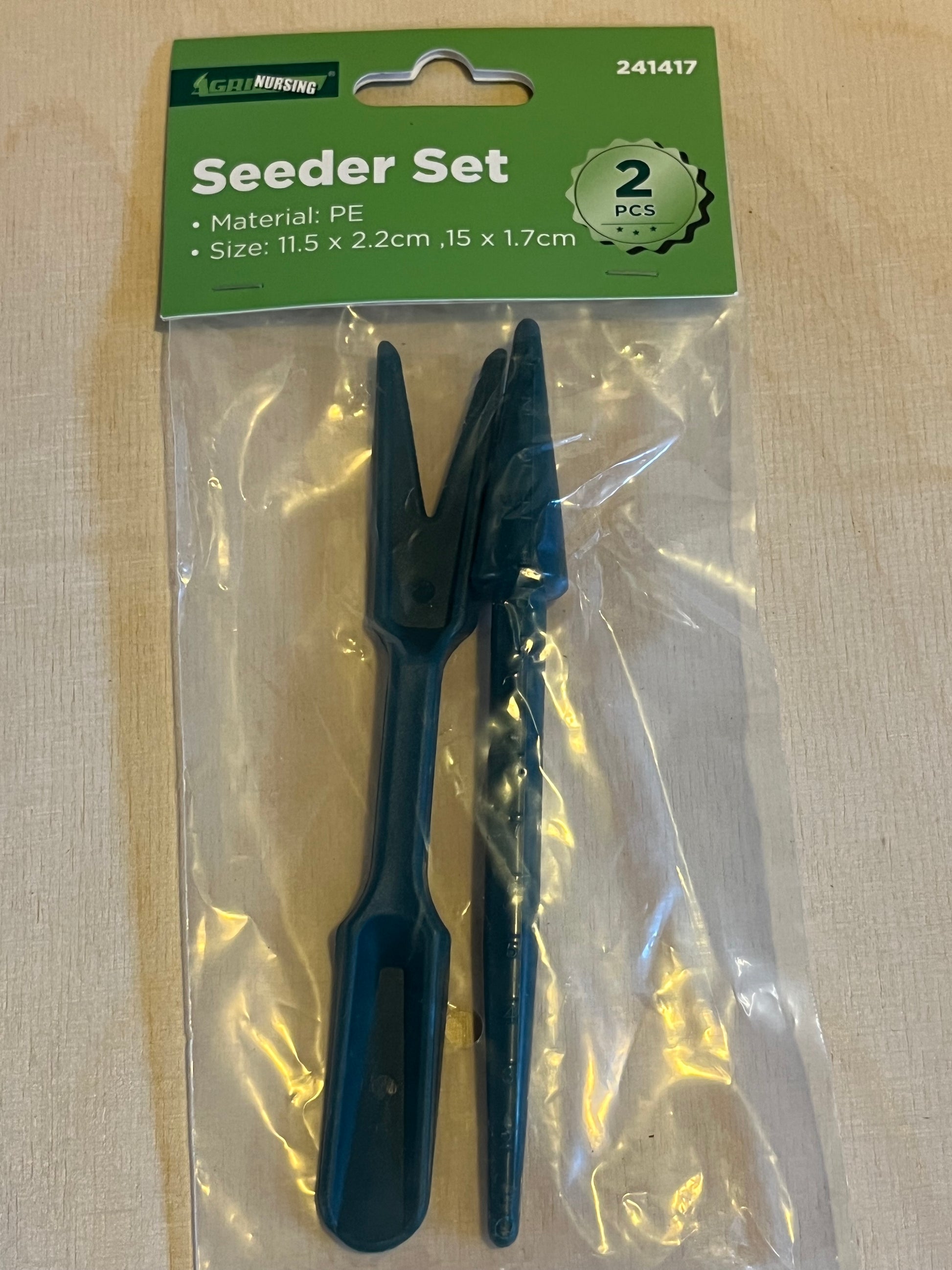 Sæt med to små, praktiske redskaber til at så og prikle frø og småplanter.