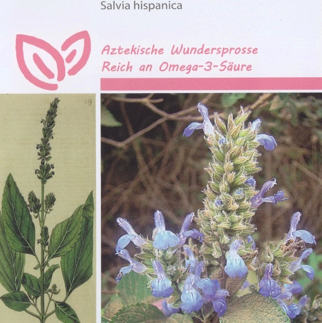 Det er fra denne salvia-art fra Mexiko, man høster de næringsrige chiafrø. Det har de mellemamerikanske indianere gjort i årtusinder.