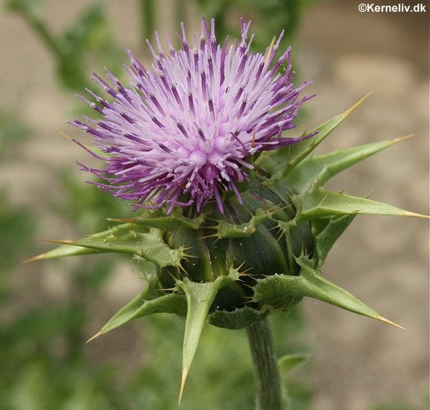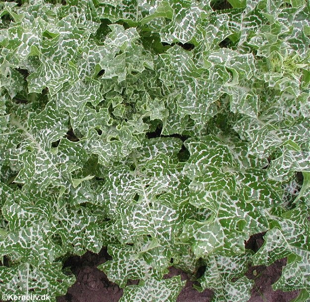En meget dekorativ op til 1,5 meter høj toårig lægeplante med store hvidmarmorerede blade.