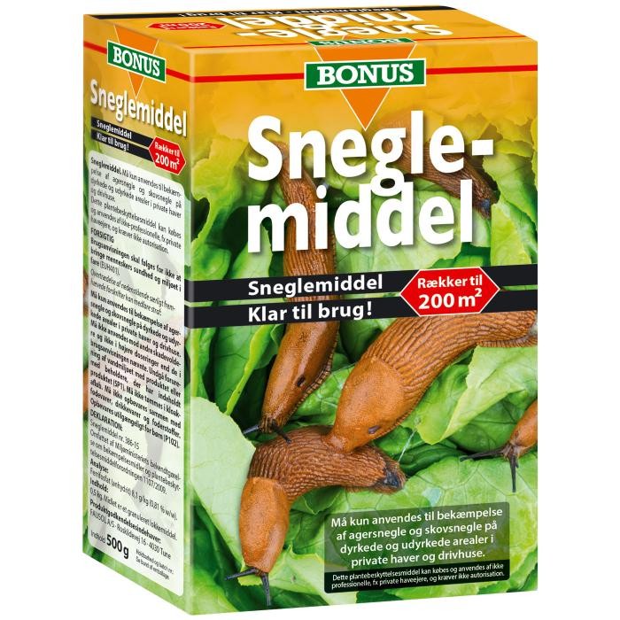 500 gram sneglegift klar til brug. Kan anvendes i køkkenhaver, på græsplæner, i bede og på udyrkede arealer i private haver og i drivhuse. Klar til at strø ud og rækker til ca. 200 m2.