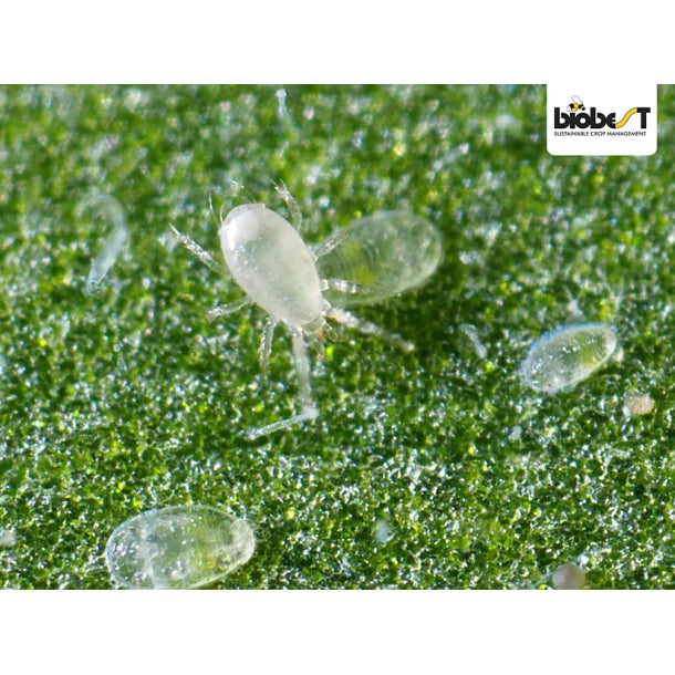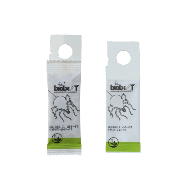 Anvend 1 småpose med Swirskii rovmider per plante eller 2-3 småposer per m2.