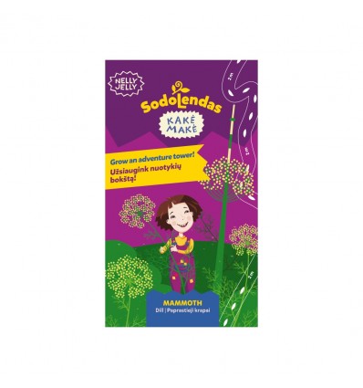 Posen indeolder 2 meter frøbånd med dild-frø, et planteskilt og en tegning, der kan dekoreres.